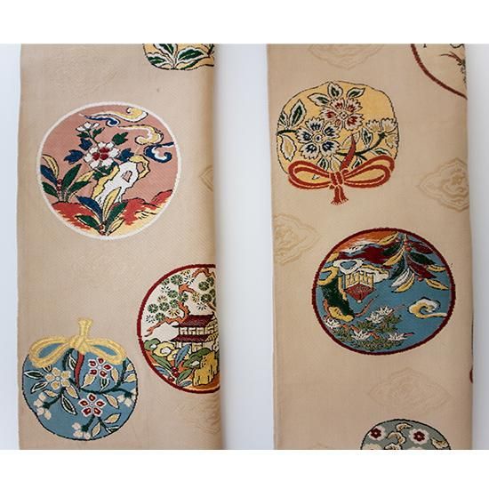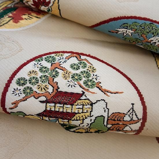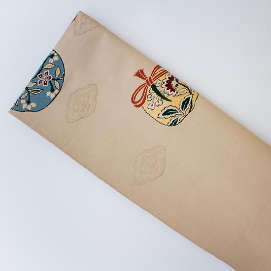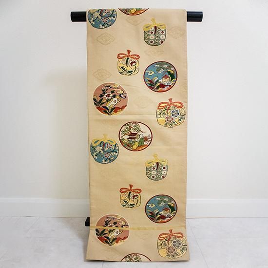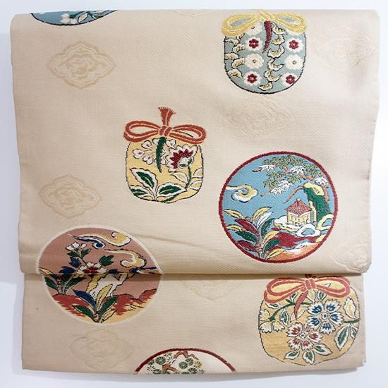 袋帯 白地 金糸 家 花 正絹 Aランク