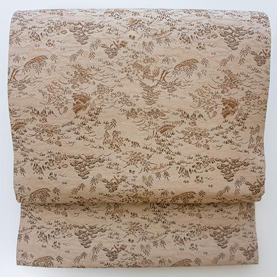 袋帯 ベージュ地 松と家 正絹 Aランク