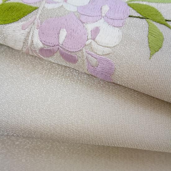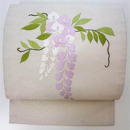 名古屋帯 刺繍 藤の花 正絹 Bランク