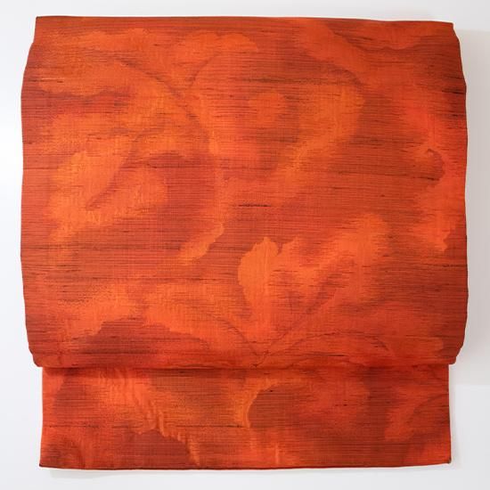 名古屋帯 赤系 ツタ柄 正絹 Aランク